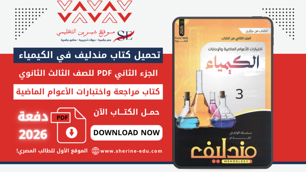 في هذا المقال، نقدم لك تحميل كتاب مندليف كيمياء 3 ثانوي 2026 PDF مع شرح مفصل لمحتوى الكتاب، وخاصة الجزء الثاني الذي يتضمن اختبارات الأعوام الماضية وخلاصة النماذج التجريبية، وهو من أهم أجزاء الكتاب للطلاب قبل الامتحان النهائي.